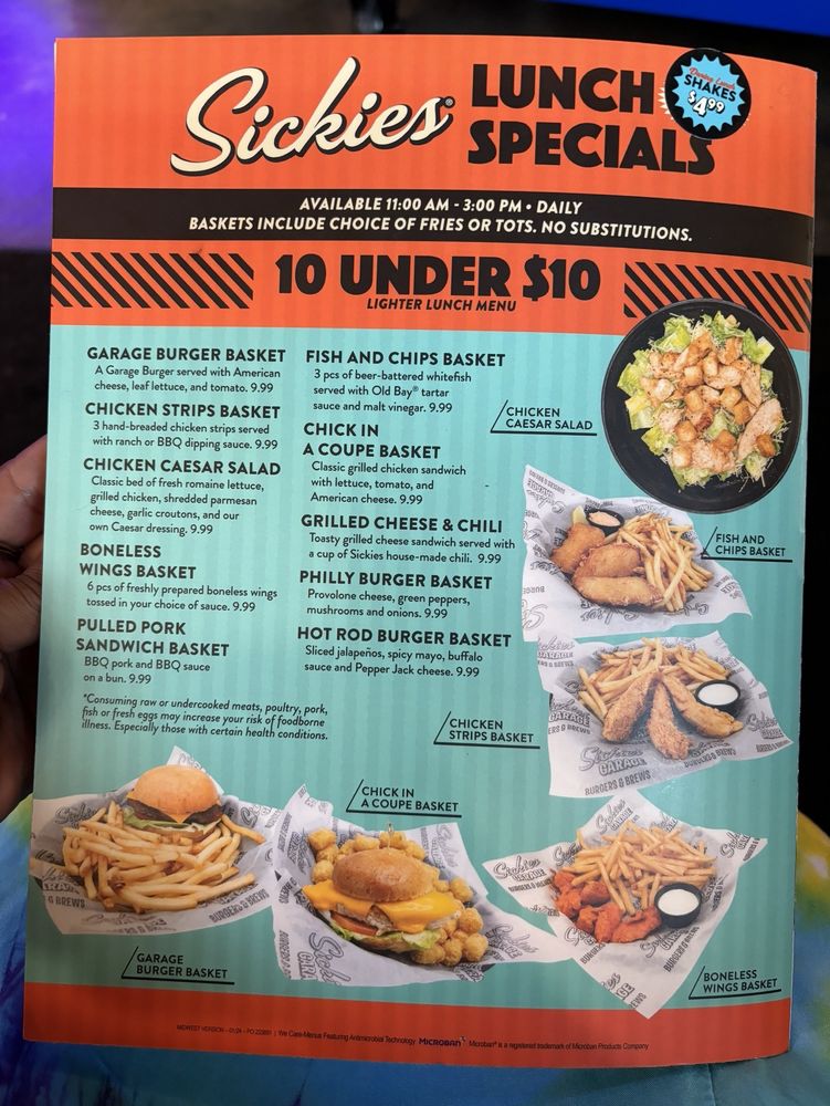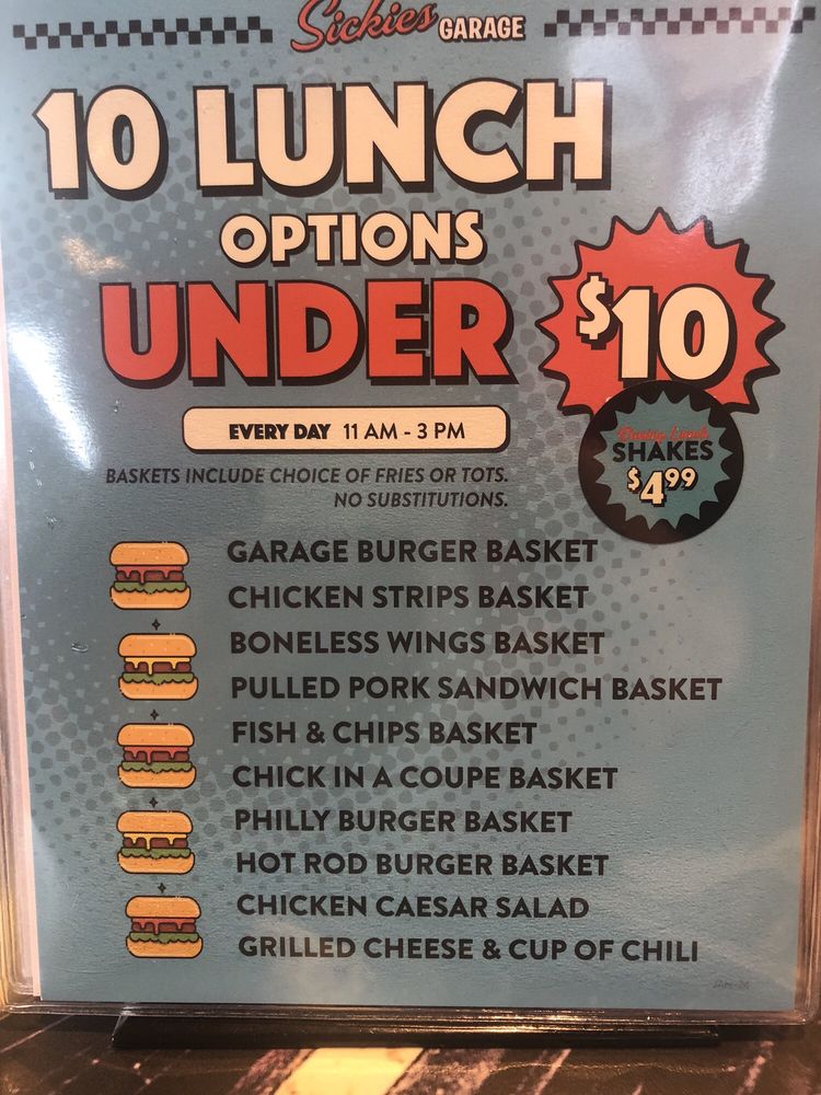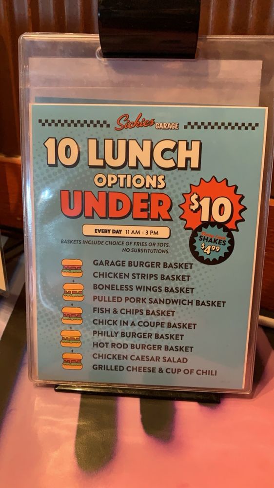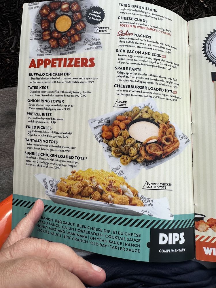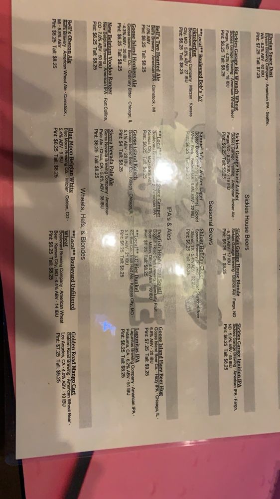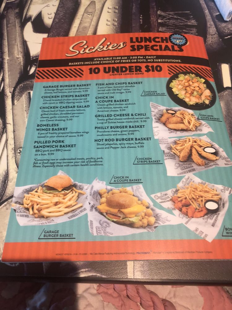 Sickies Garage Burgers & Brews is a trendy spot in Overland Park that offers a variety of chicken wings, burgers, and beer. The menu features delicious appetizers like Buffalo Chicken Dip and Tater Kegs, along with a selection of flavorful chicken wings. Their Signature Kobe Burgers, such as The Classic and Smoke Shack, are a must-try for burger lovers. Customers have raved about the generous portion sizes and the option to customize their orders, making it a great spot for groups. The atmosphere at Sickies Garage is lively and welcoming, with attentive service and a clean environment. With options for outdoor seating and a full bar, it's a great place to enjoy a casual meal or happy hour specials. Plus, their vegetarian-friendly menu and accommodating substitutions make it a standout for all dietary preferences. Overall, Sickies Garage Burgers & Brews offers a memorable dining experience with a diverse menu and top-notch customer service.